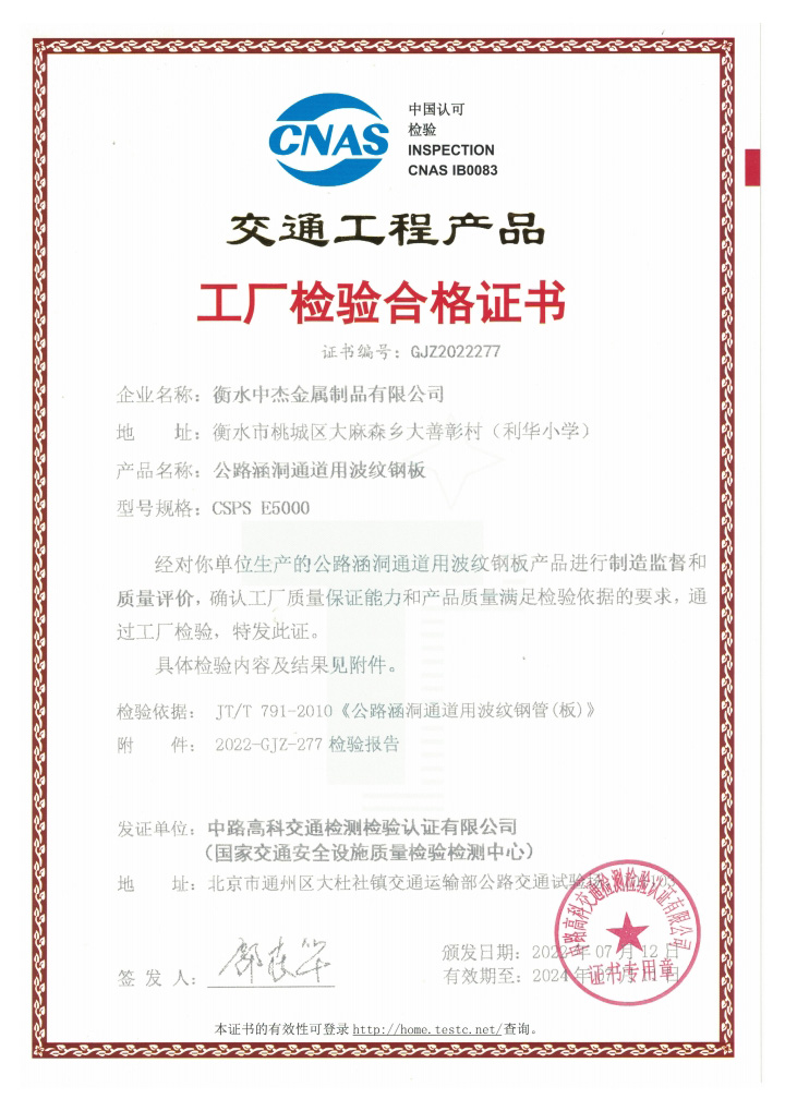 歡迎光臨衡水中杰金屬制品有限公司 網(wǎng)站關(guān)鍵詞: 波紋管涵鋼波紋管